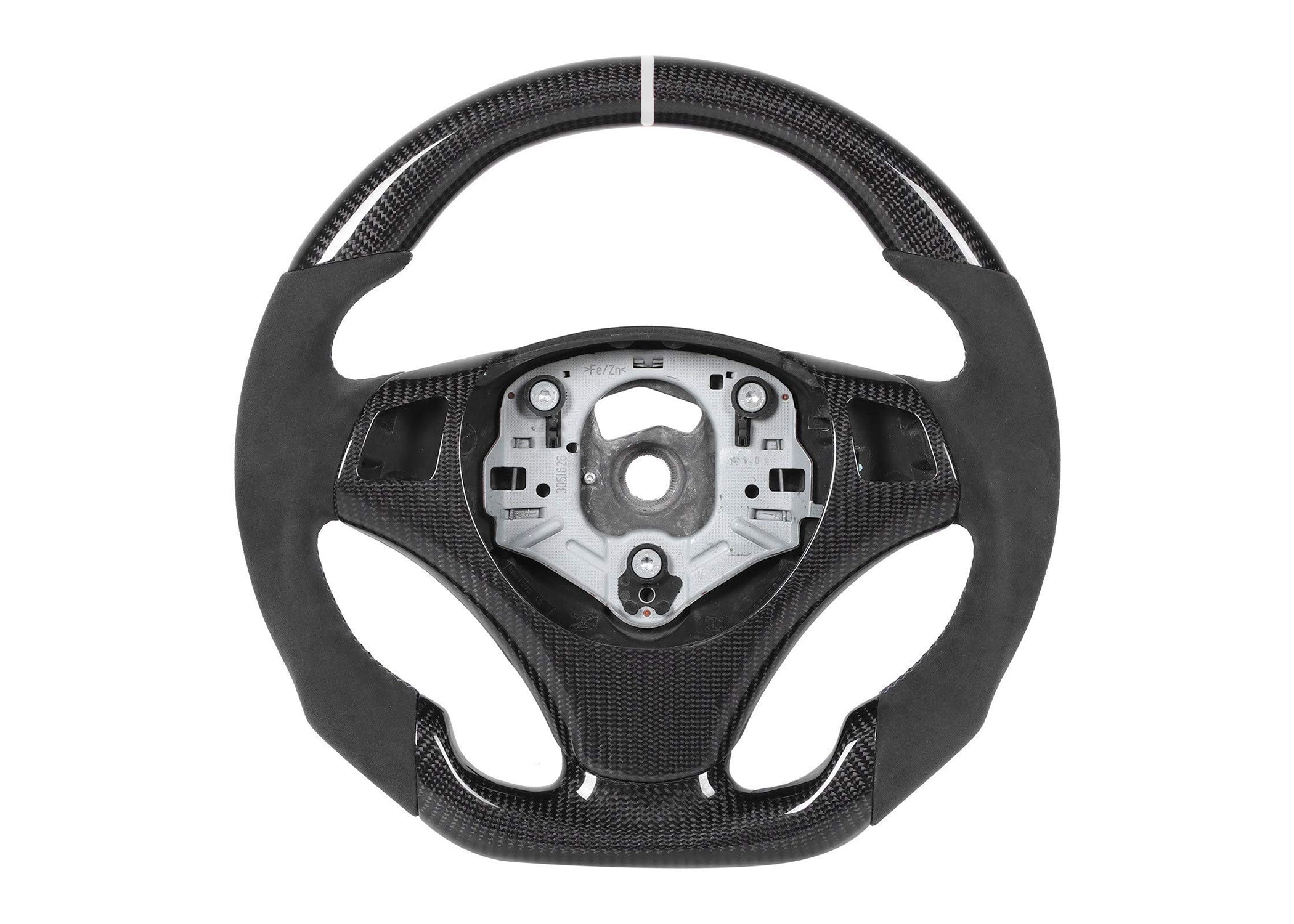 BMW 1 3 Series Flat-Bottom Carbon Fiber Alcantara Steering Wheel (with Paddle Holes) | E90 E91 E92 E93 E81 E82 E87 E88 325i 328i 330i 335i M3