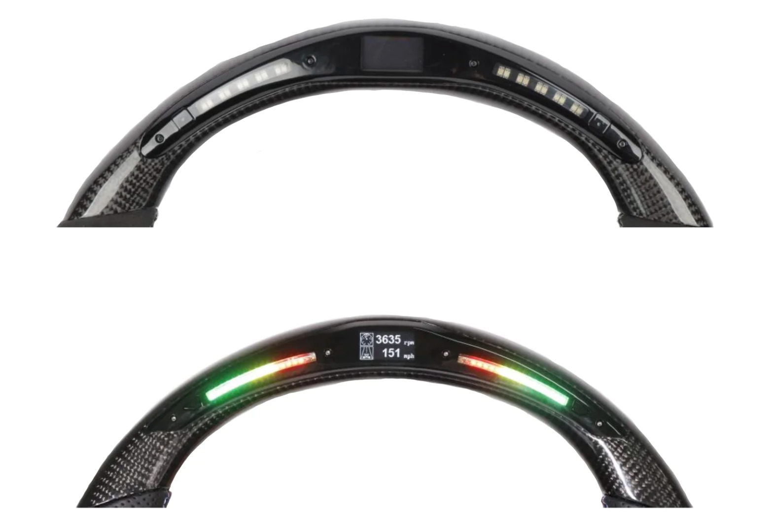 This revolutionary, LED Performance carbon fiber steering wheel brings the supercar experience into the cockpit of your BMW! From rev displaying LED lights to displaying your coolant and oil temperatures right in front pf you, this LED steering wheel is an instant game changer to the entire aesthetic of your interior!