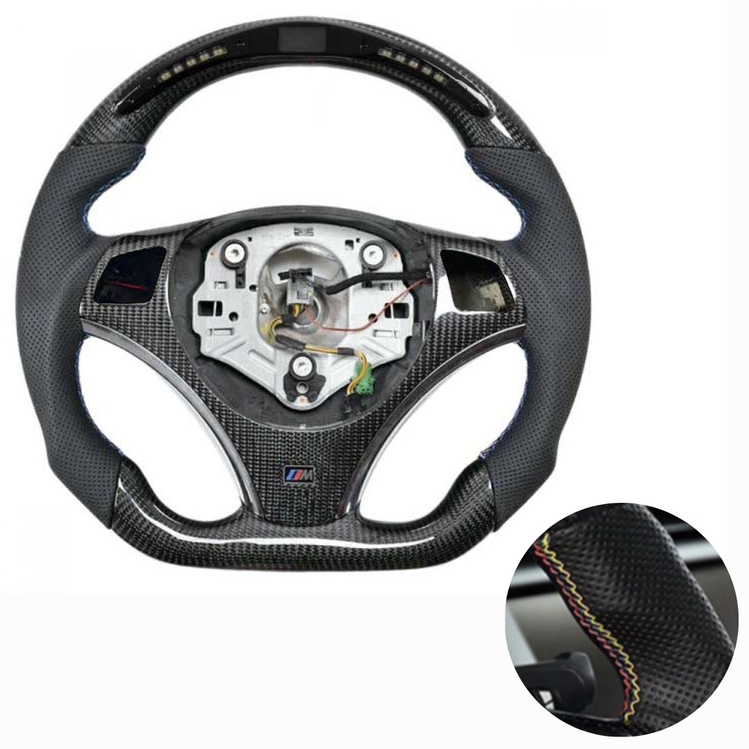 BMW 1 3 Series LED Performance Flat-Bottom Carbon Fiber Steering Wheel (without Paddle Holes) | E90 E91 E92 E93 E81 E82 E87 E88 325i 328i 335i M3