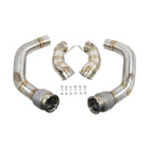 - Dual insulated T304 stainless-steel catless downpipes (left + right turbo outlets)