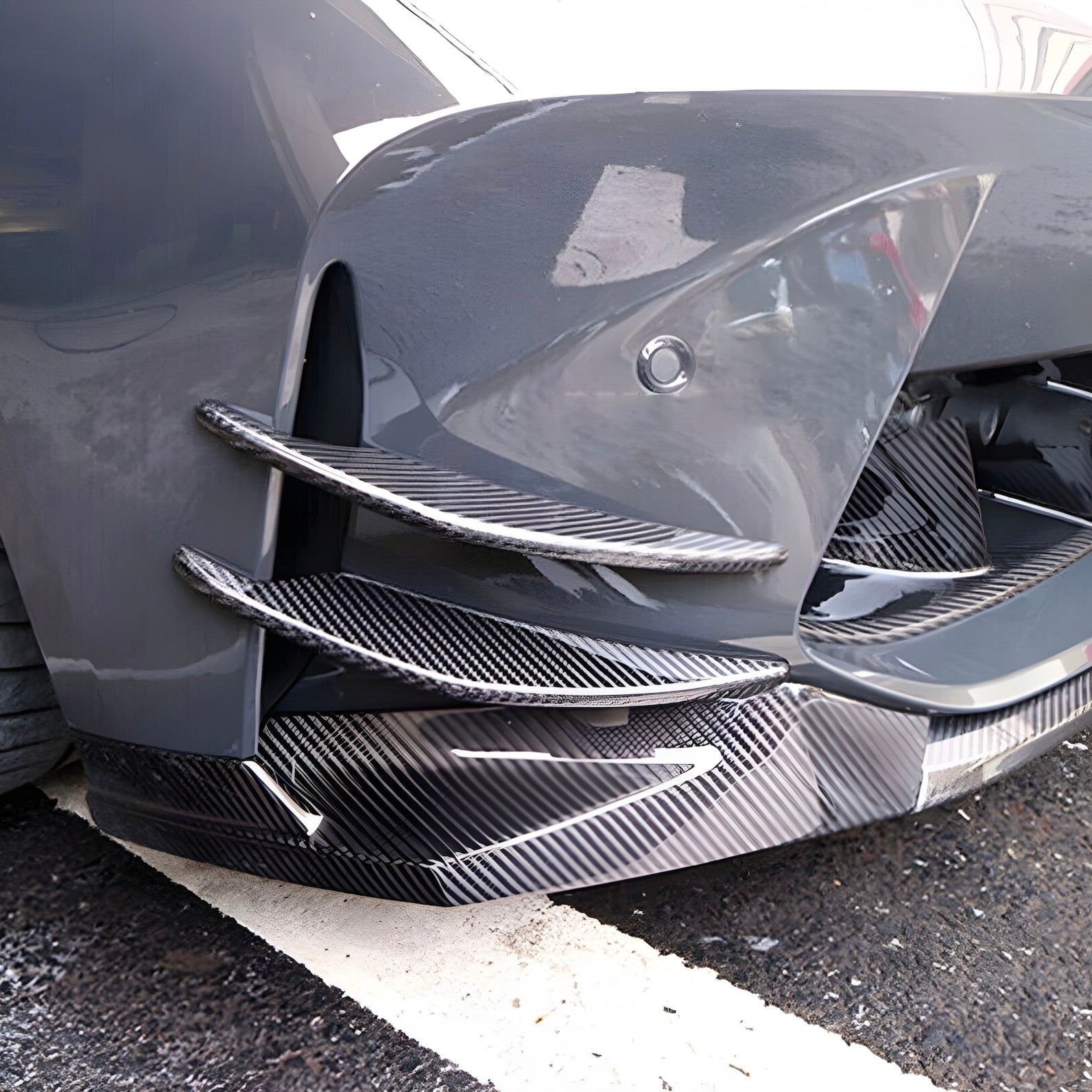 Enhance the aggressive styling of your G80 / G81 M3 with precision-engineered real carbon fiber front bumper canards. Designed for the latest generation M3 (2021+), these aerodynamic fins complement the natural body lines of the factory bumper while sharpening its bold, performance-driven look.