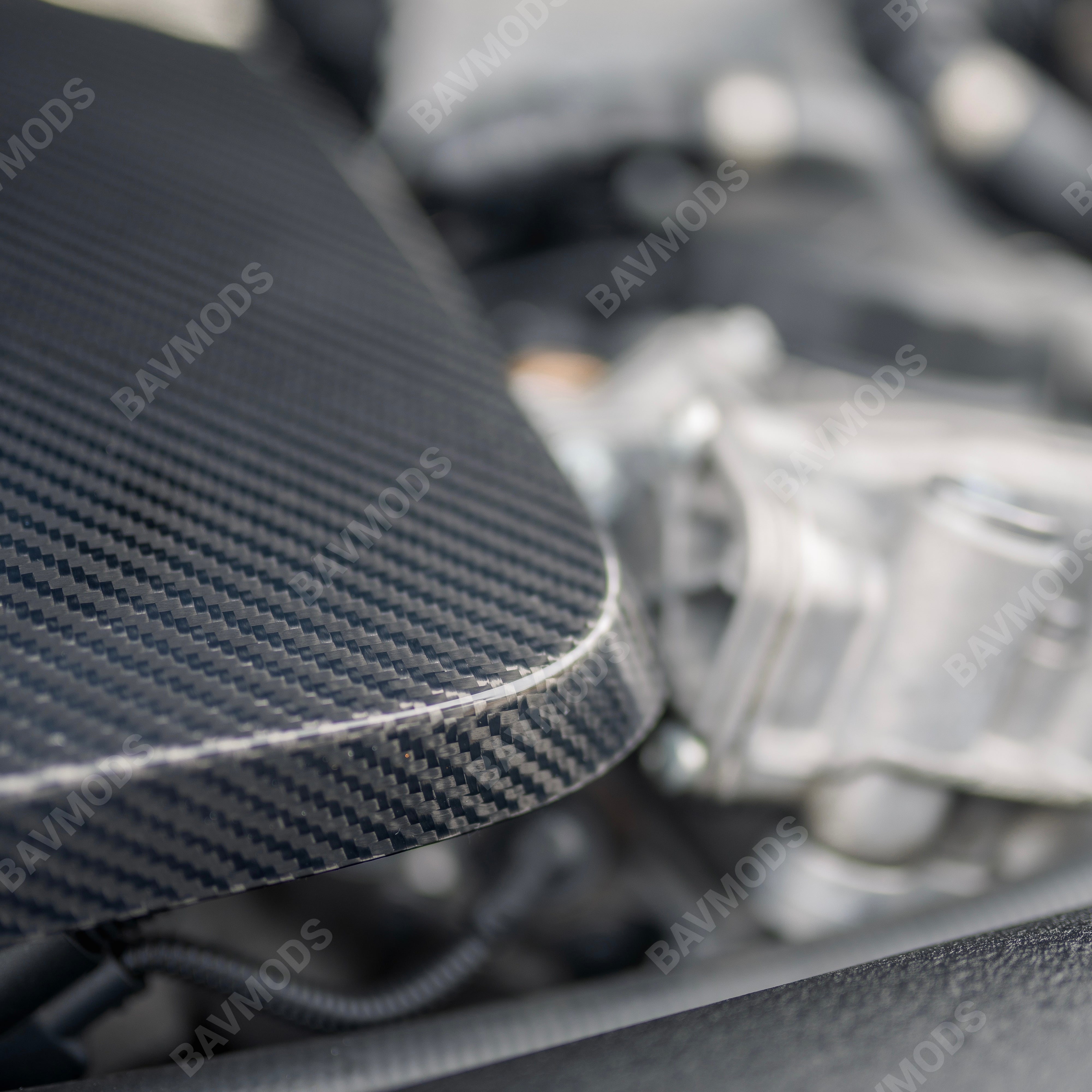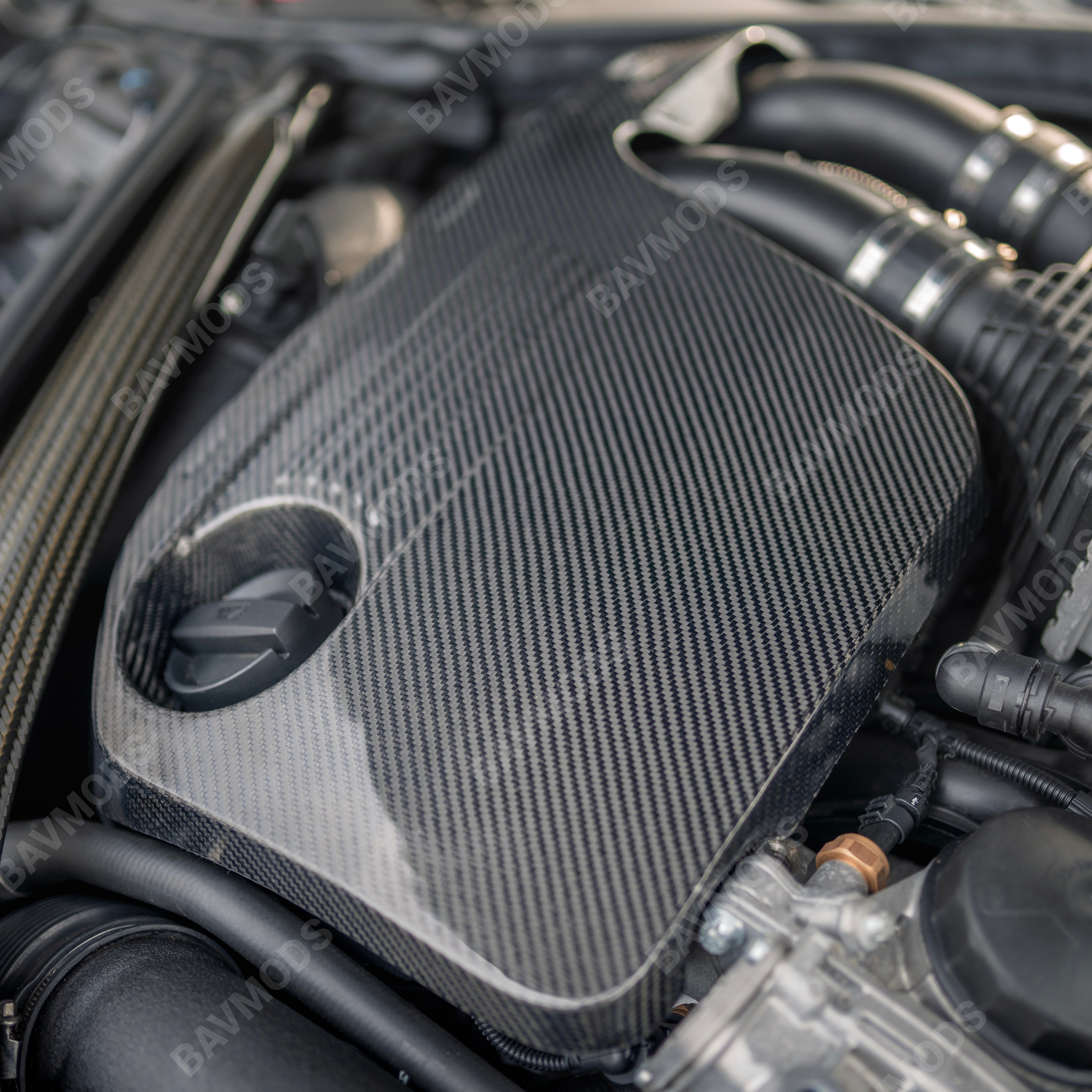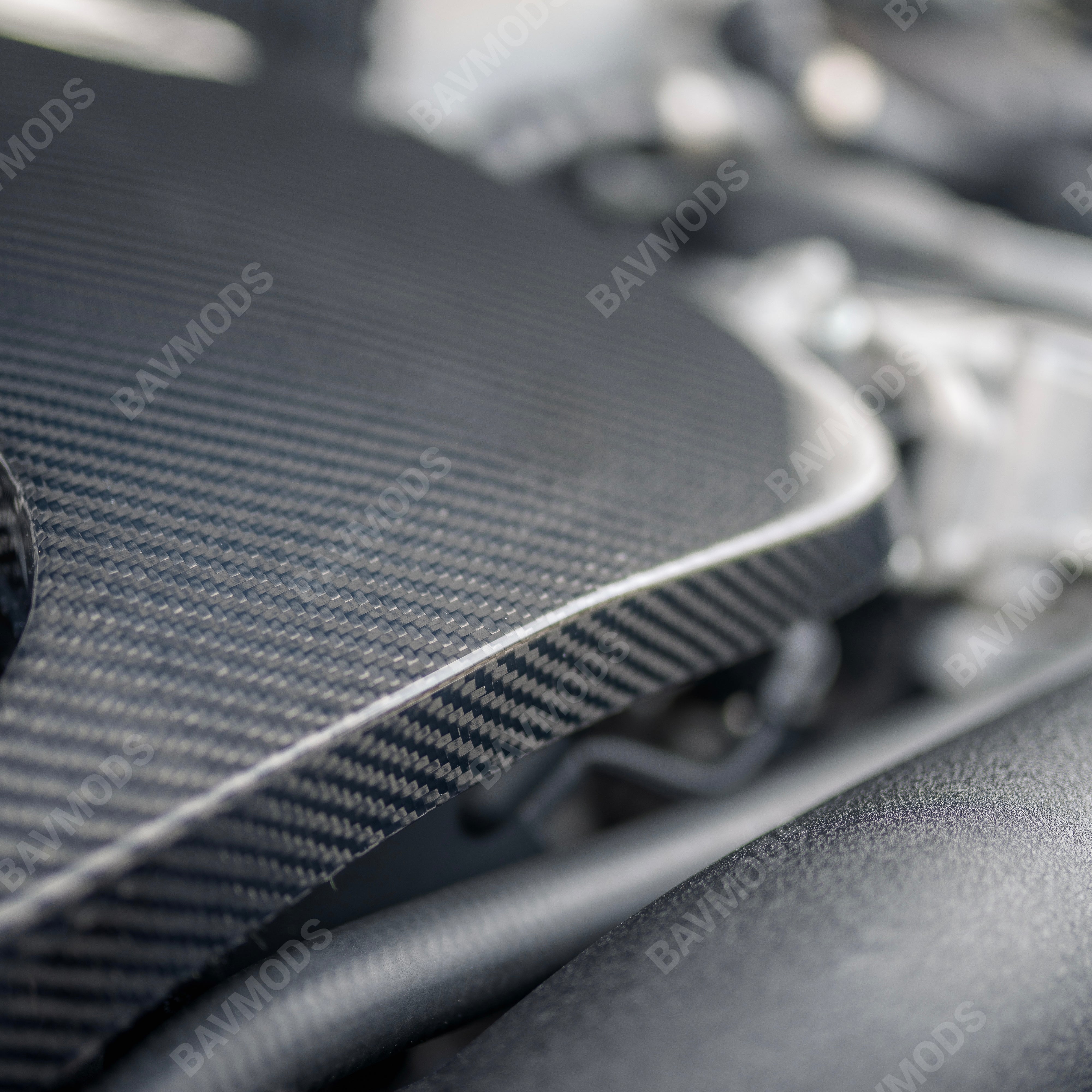Unleash the full potential of your BMW M with our authentic twill carbon fiber engine cover for the S55 engine.