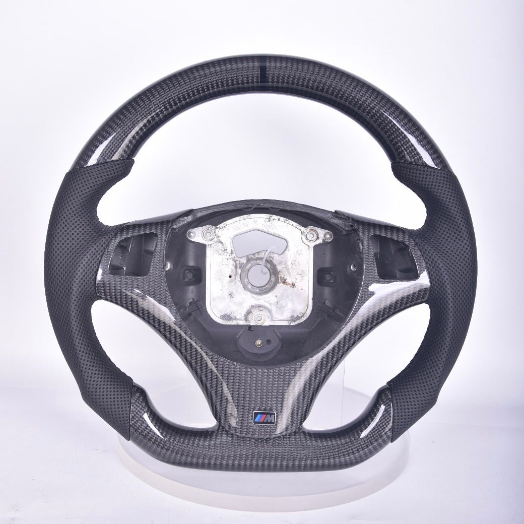 Custom BMW 1 / 3 / X / Z Series Flat-Bottom Carbon Fiber Steering Wheel Preset 001 | Black Stripe, Black Stitching, Twill Carbon | E81 E82 E87 E88 E90 E91 E92 E93 M3