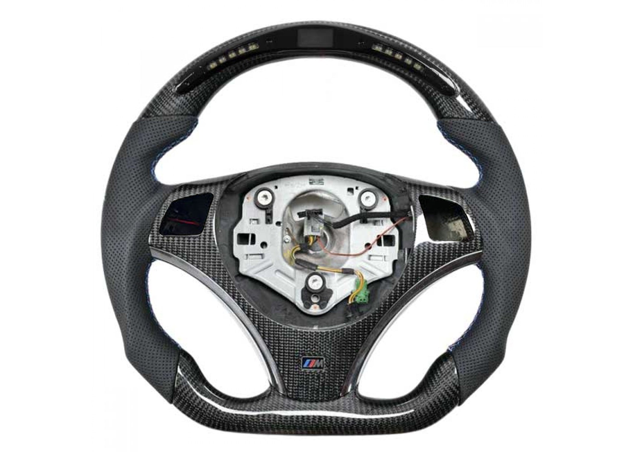 BMW 1 3 Series LED Performance Flat-Bottom Carbon Fiber Steering Wheel (without Paddle Holes) | E90 E91 E92 E93 E81 E82 E87 E88 325i 328i 335i M3