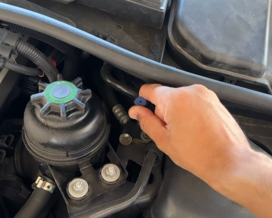 Disconnect the R-134A canister and reinstall the low pressure port cap by twisting it clockwise until tight.