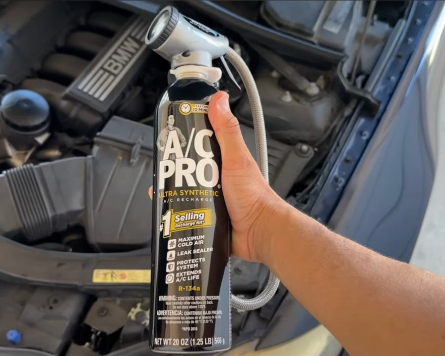 It is highly recommended to use an approved R-134A refrigerant canister that does not contain any leak-sealing additive. Leak-sealing additives are a short-term fix that causes long-term issues. Use at your own caution.