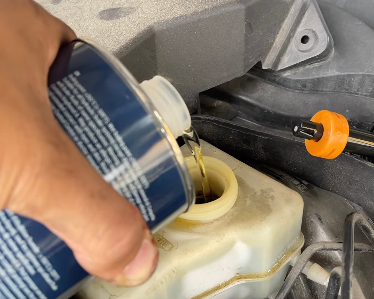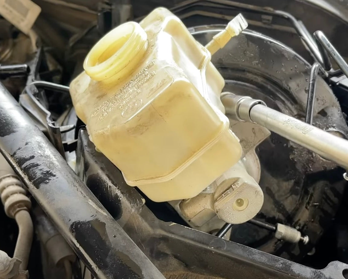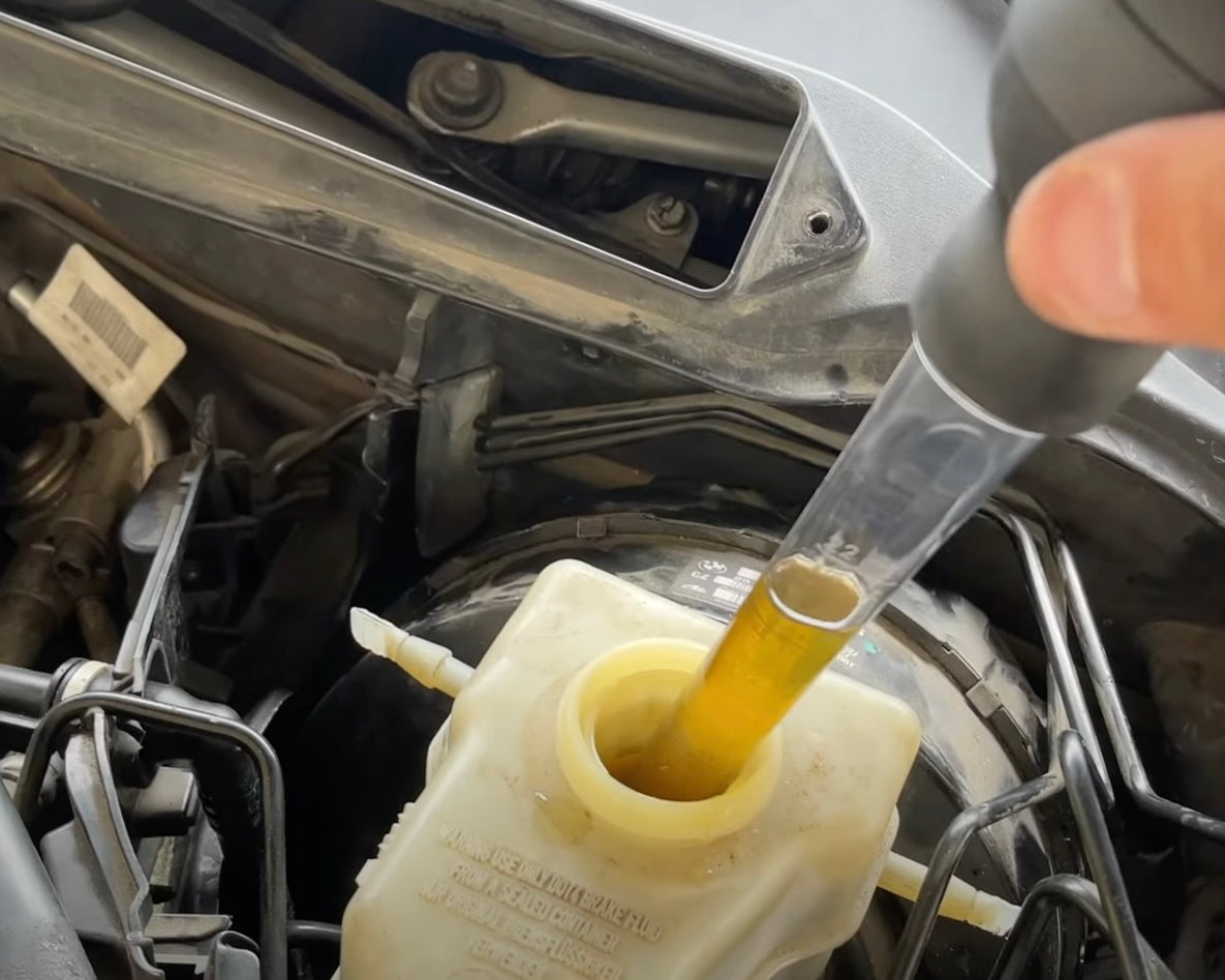 Drain as much brake fluid as possible from the brake fluid reservoir, to avoid spillage in the later steps.