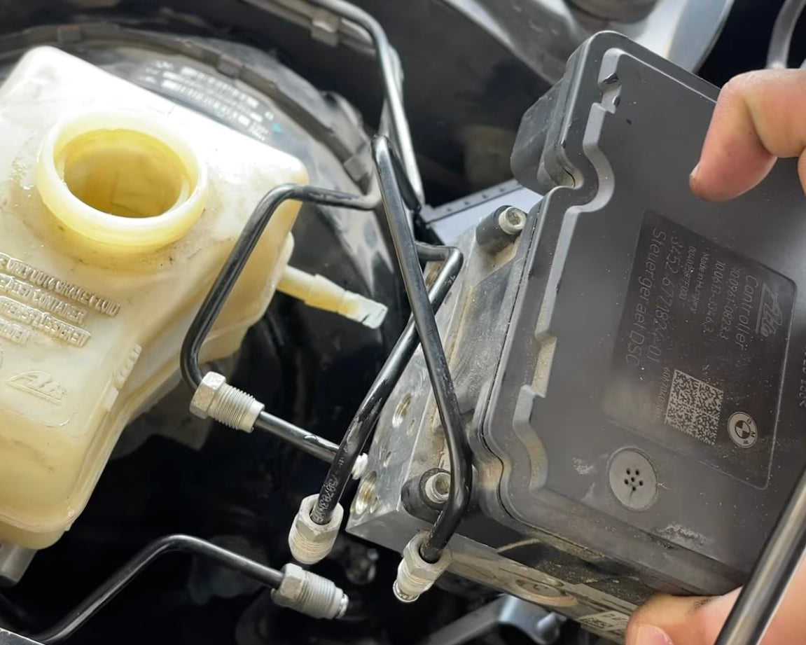 Remove the DSC module from the engine bay ensuring not to damage any of the brake lines.