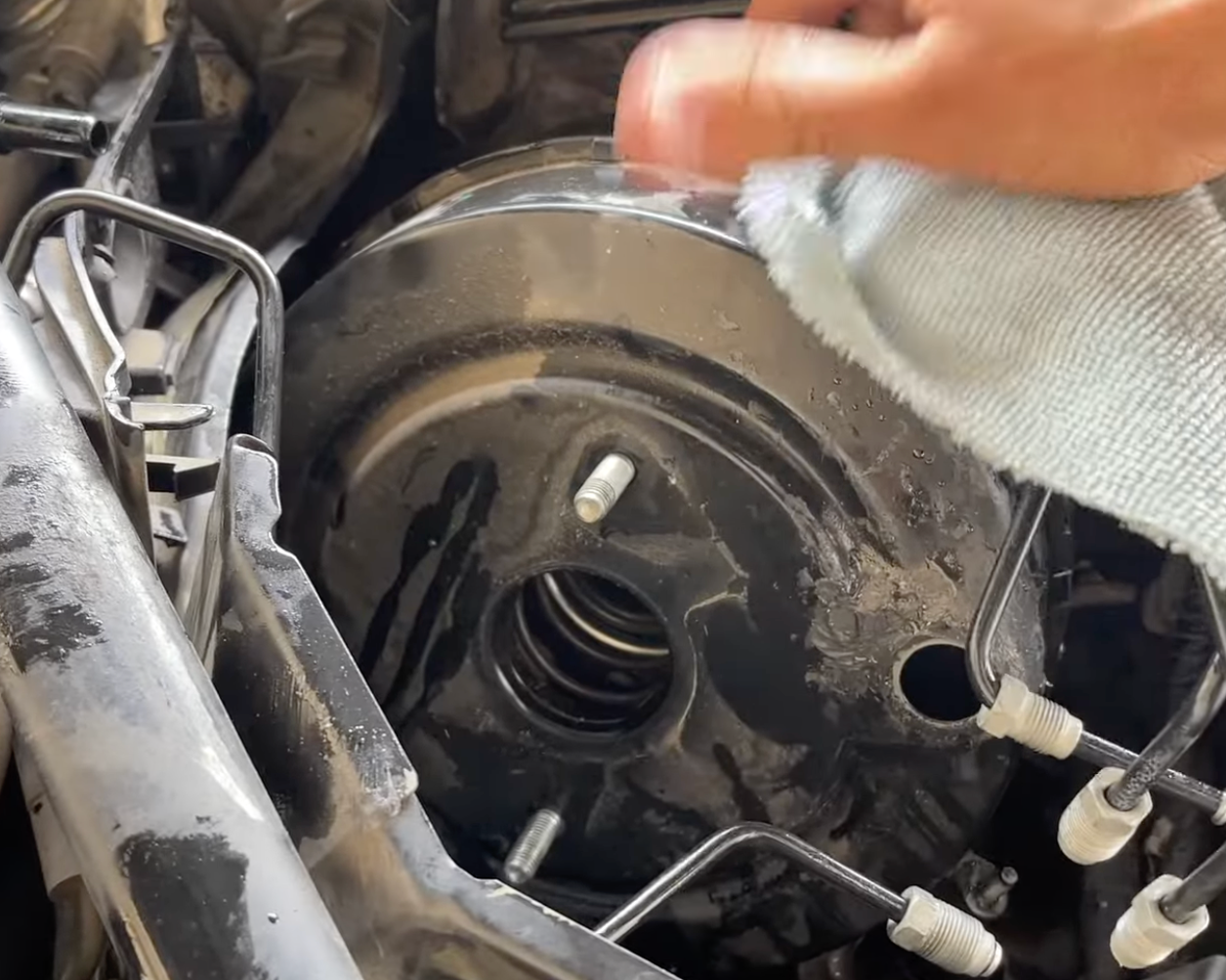 Reinstall the two 10MM nuts that secure the brake booster and torque them down tightly.