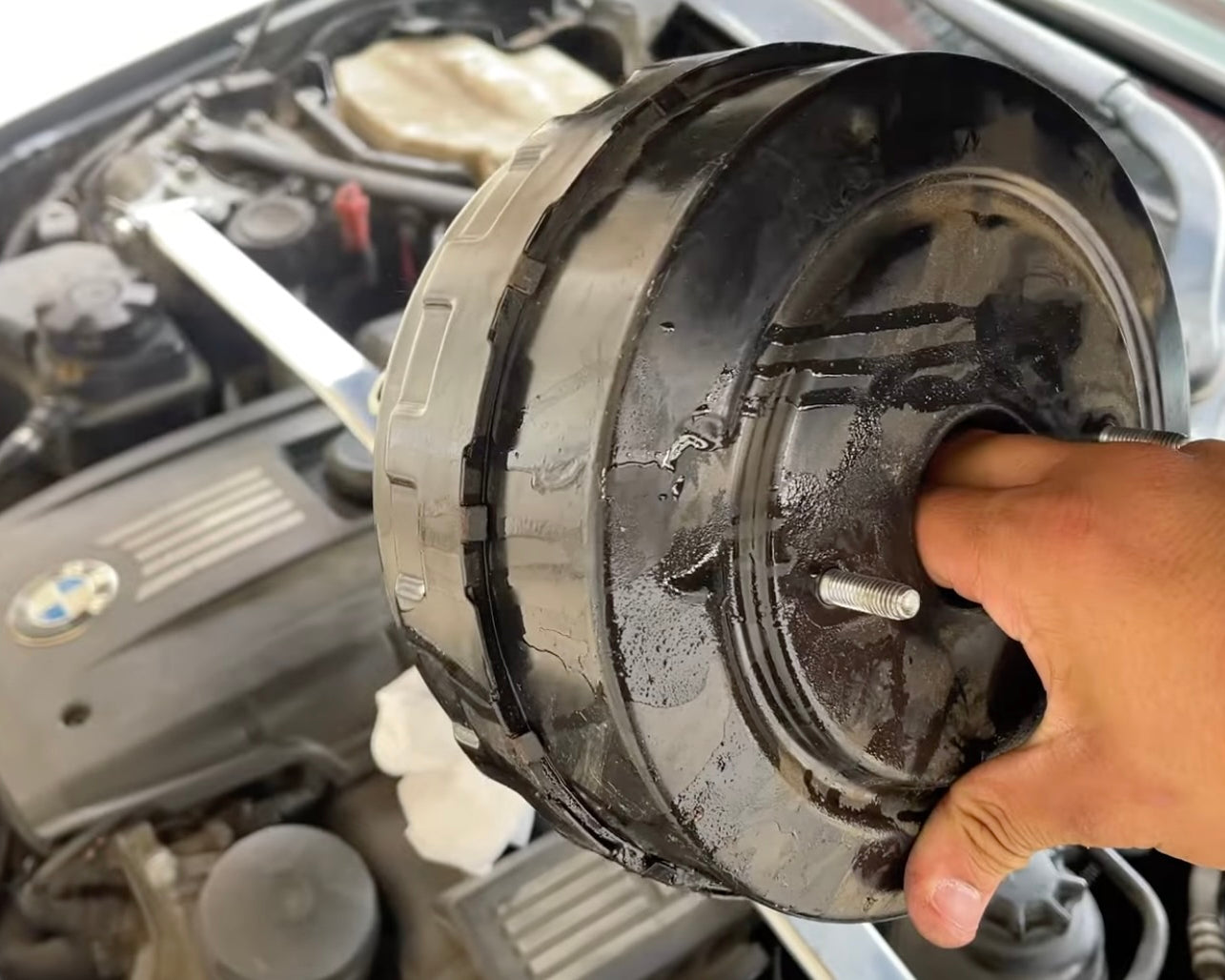 The brake booster fails over time for many reasons, the most common being a tear in the rubber diaphragm that causes braking issues. When the brake booster fails, the brake pedal will lock up and be completely stiff or the brakes will not engage at all.