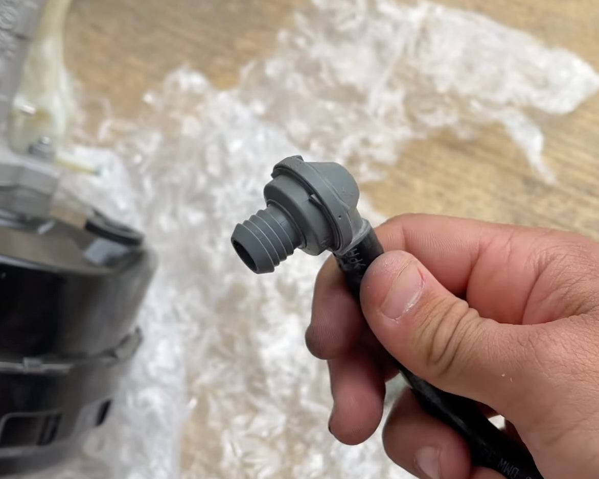 Unscrew the fuel rail vent cap and place it off to the side. No tools are required for this.