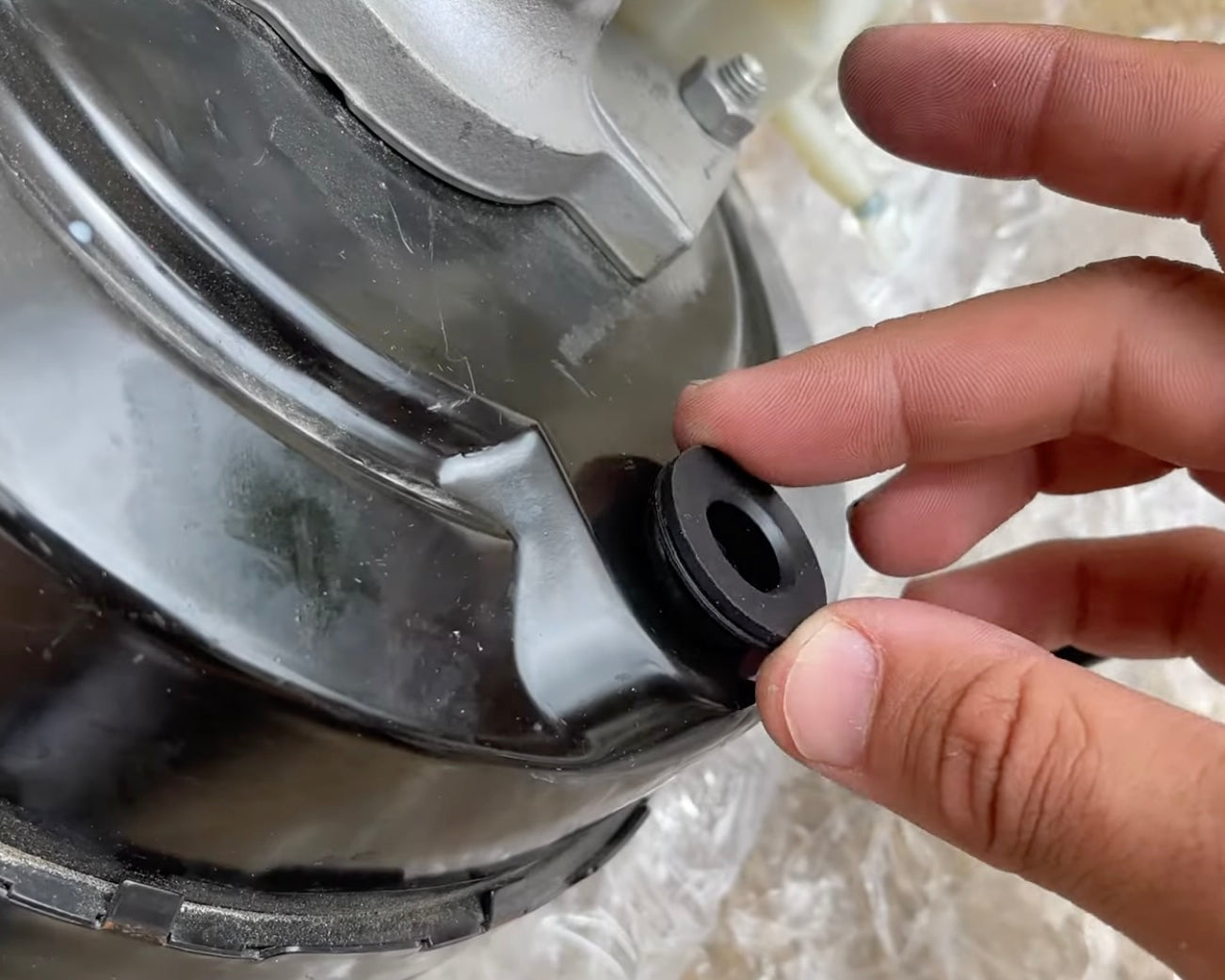 When installing the new brake booster, replace the check valve seal with a brand new one. This will minimize the risk of a vacuum leak in the future.