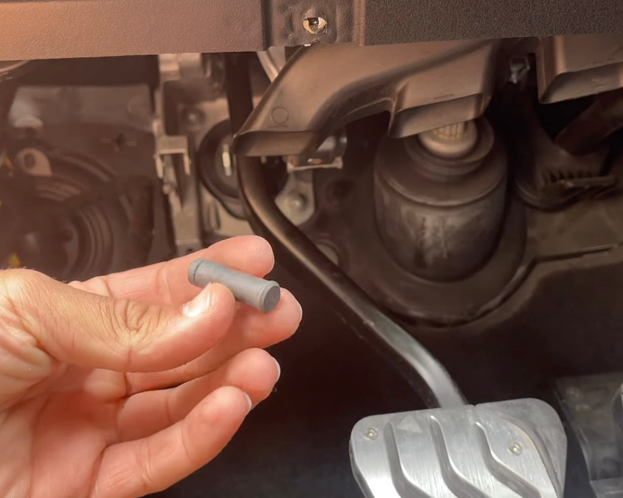 Finish removing the brake pedal retention pin by sliding it towards the passenger side and wiggling it from the brake pedal.