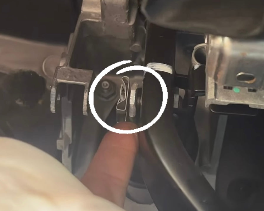 Install a new brake pedal retention clip by sliding it over the metal pin. This part must be replaced with a new one, do not re-use your old one.