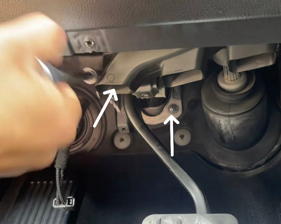 Remove the driver-side footwell panel by removing the three T-20 retention screws.