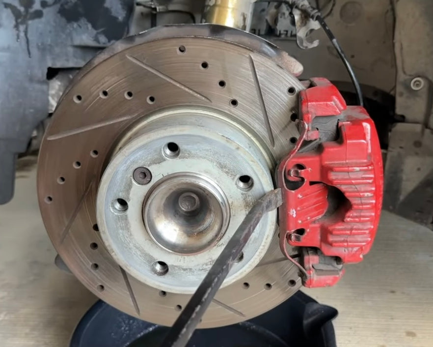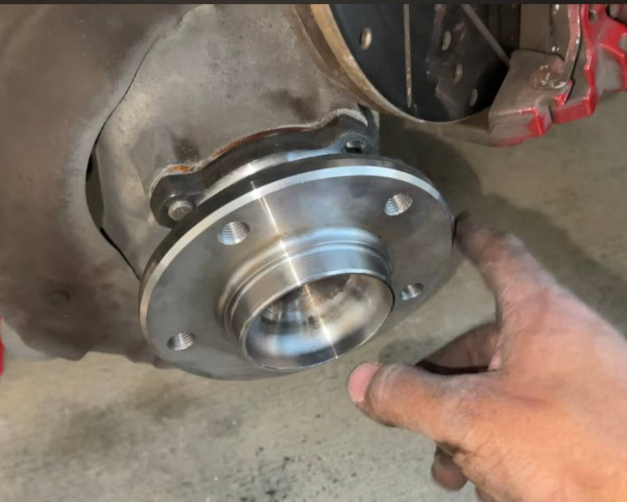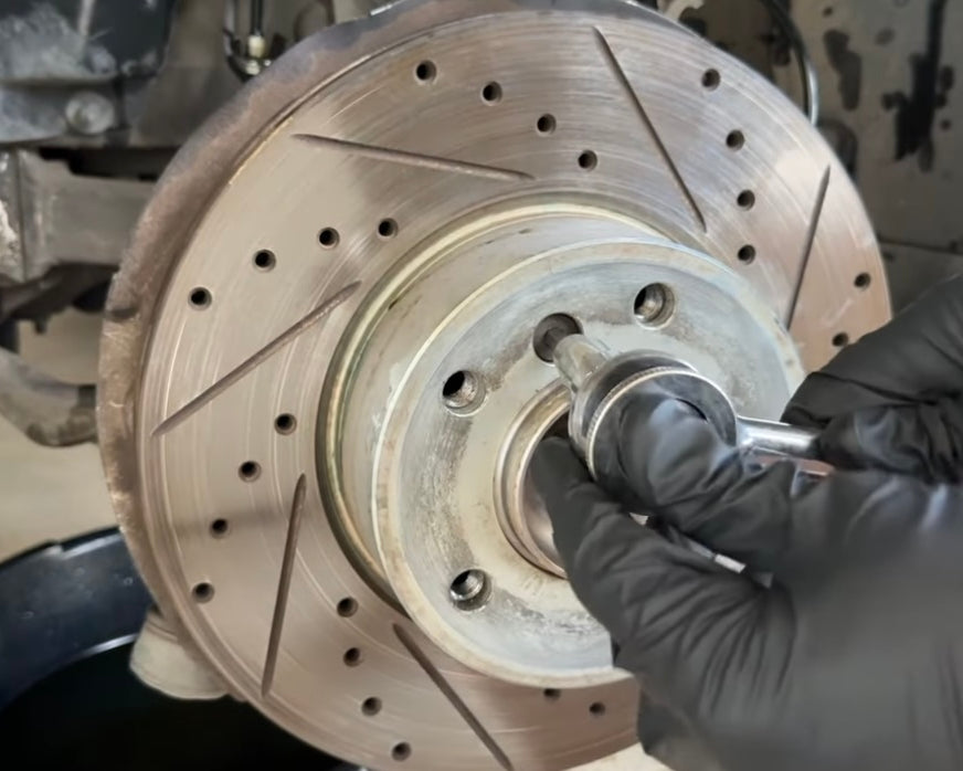 After the new wheel bearing is seated and torqued, re-install your brake rotor, caliper and all according hardware. Be sure to torque all components to the proper spec.