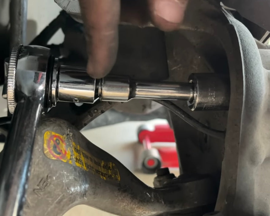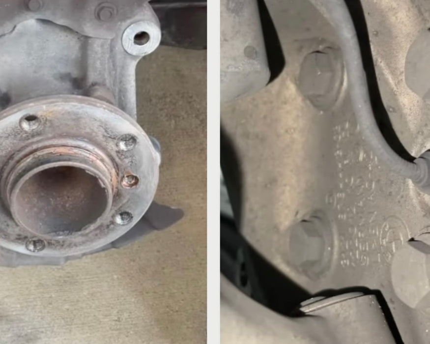 The front wheel bearing will have 4 18MM bolts holding it in place. These bolts are mounted at awkward angles and are held on extremely tightly at 81-83 ft-Ib torque, so be ready to use some elbow grease and creativity.