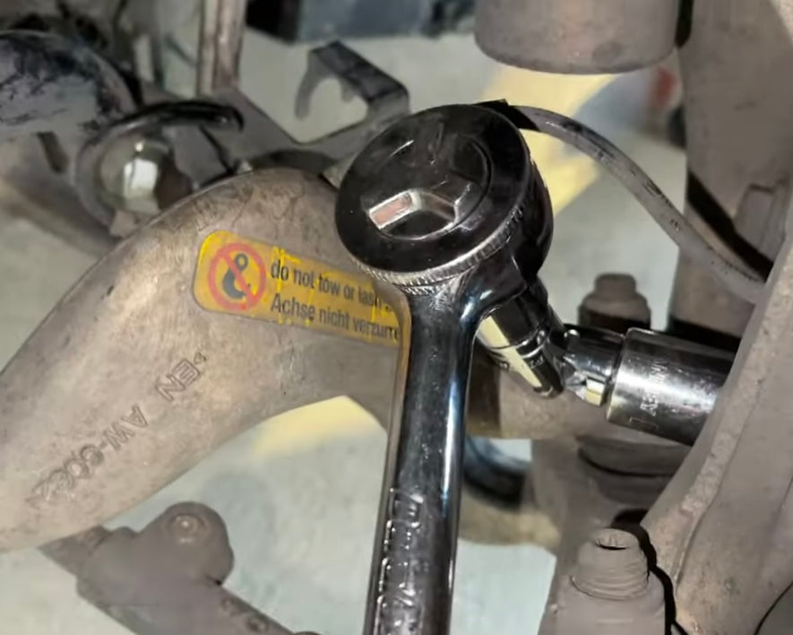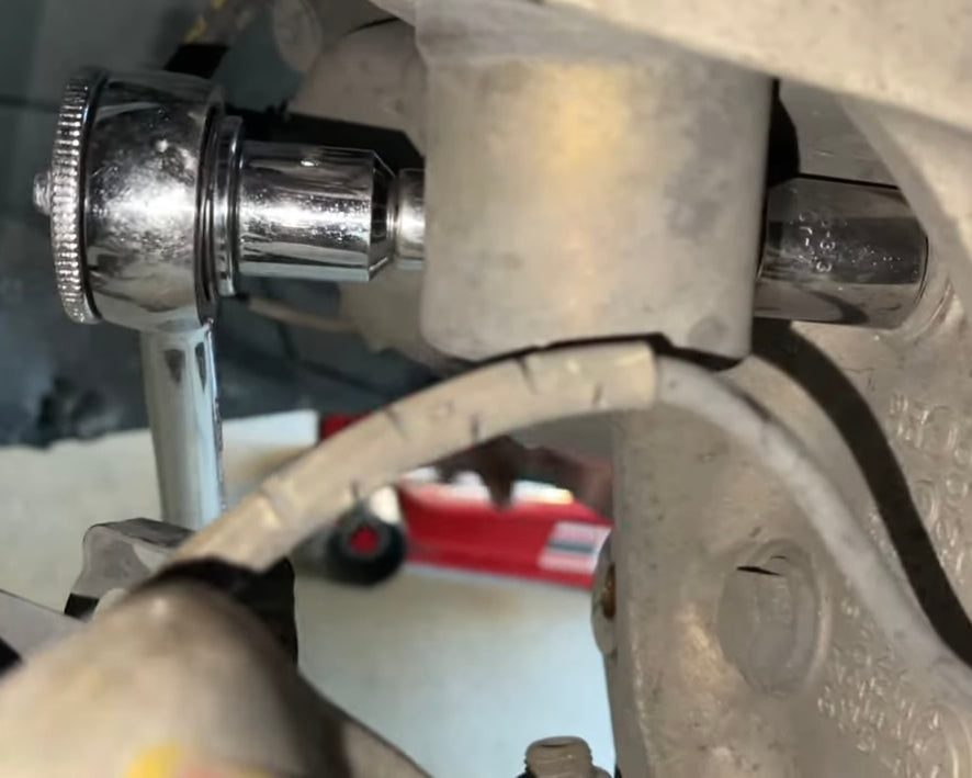 Be sure to support the brake caliper by hoisting it up with zip ties/bungie cords, etc.