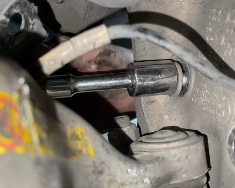 Remove the third bolt (upper right) by using an 18MM socket on a swivel adapter. This is the easiest one to remove, simply use a short adpater.
