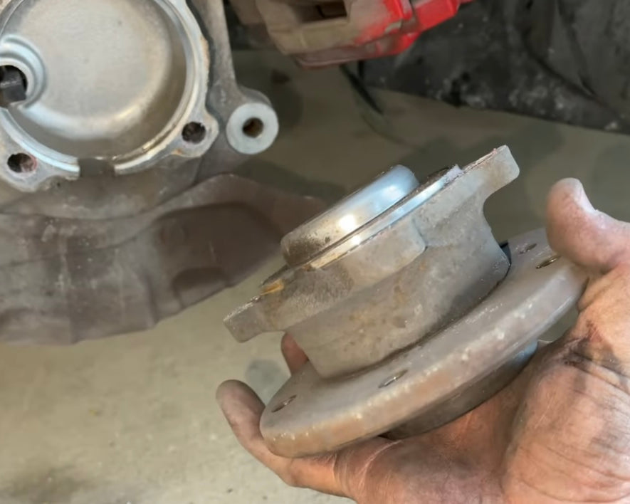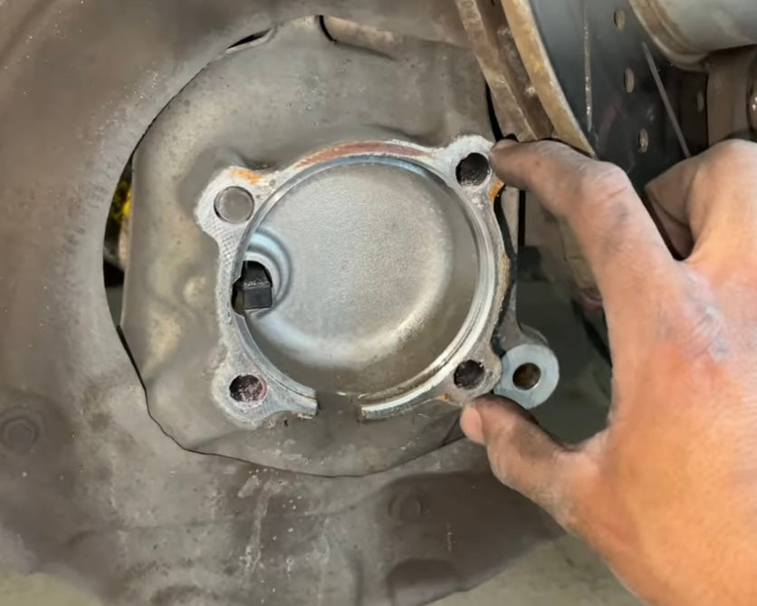 Once all four bolts are removed, the wheel bearing will simply slide out of place.