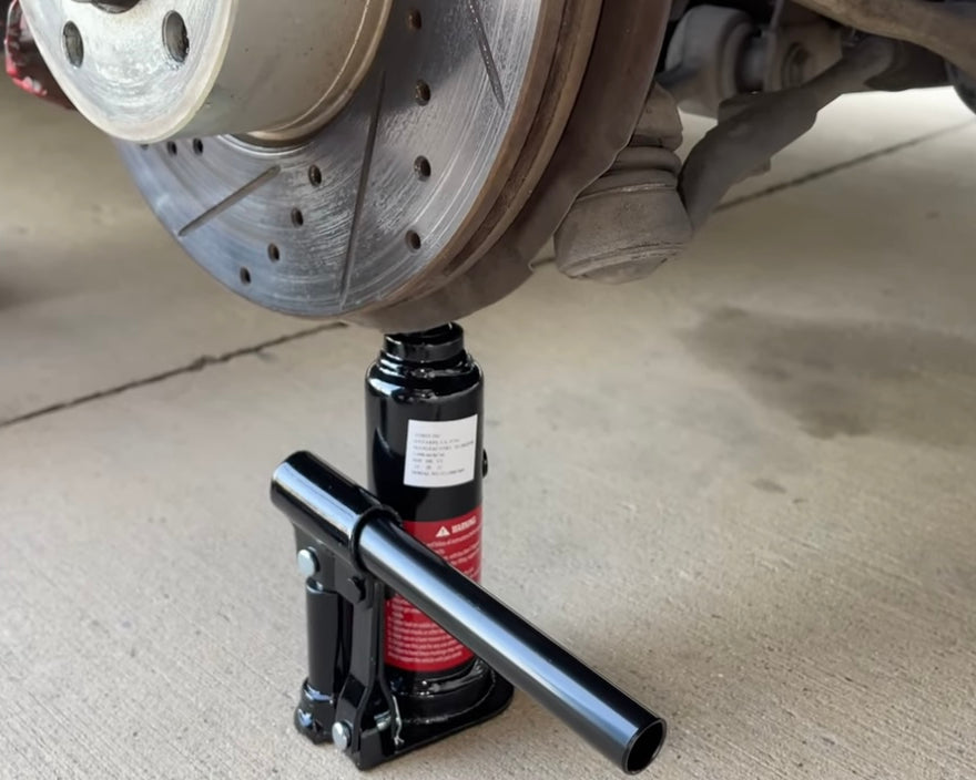 Using a floor jack, raise the suspension knuckle just enough to free up the sway bar end link.