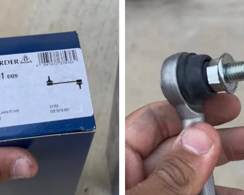 Inspect the old sway bar end link for signs of wear that may indicate any suspension issues.
