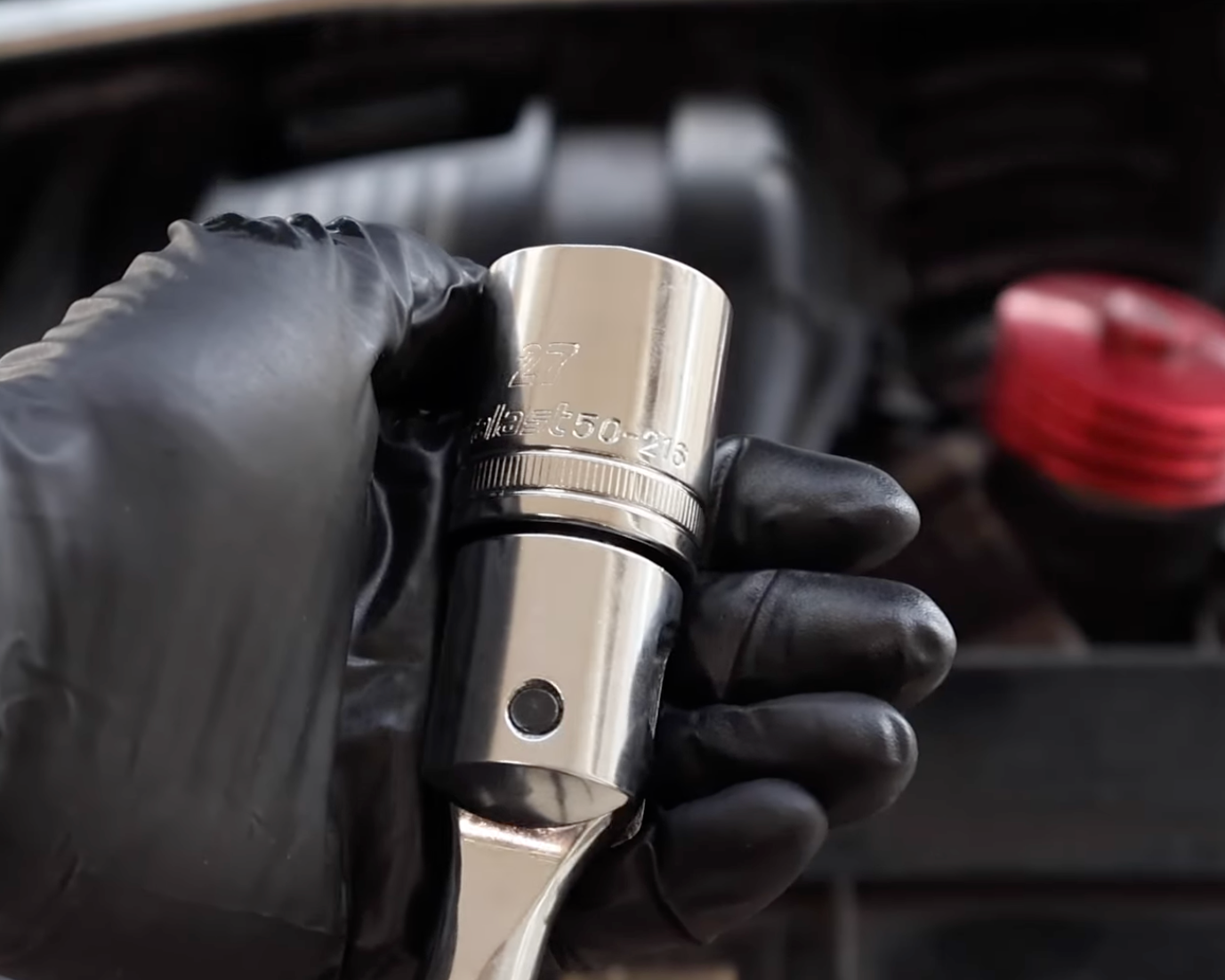 On this N5X engine, the timing chain tensioner requires a 27mm socket for removal. Always verify the exact size for your specific model, as it may vary.