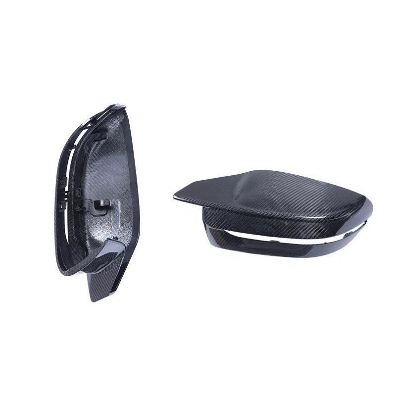 Enhance your BMW's exterior with these genuine carbon fiber mirror cap covers. Designed for a sleek, aggressive look, they securely clip in like the factory originals, ensuring a flawless fit and premium finish.