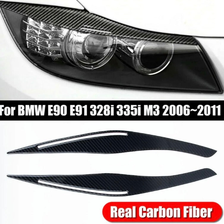 BMW 3 Series Real Carbon Fiber Headlight Eyelid Eyebrow Cover (2009-2012)| LCI E90 328i 335i