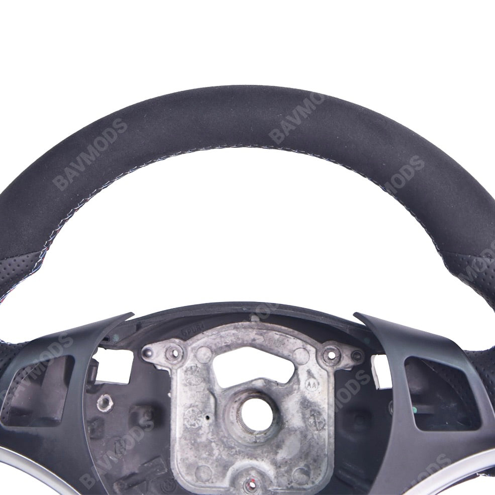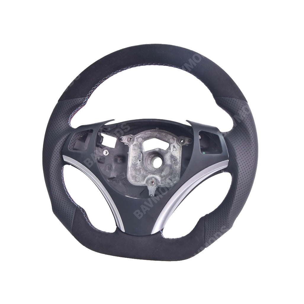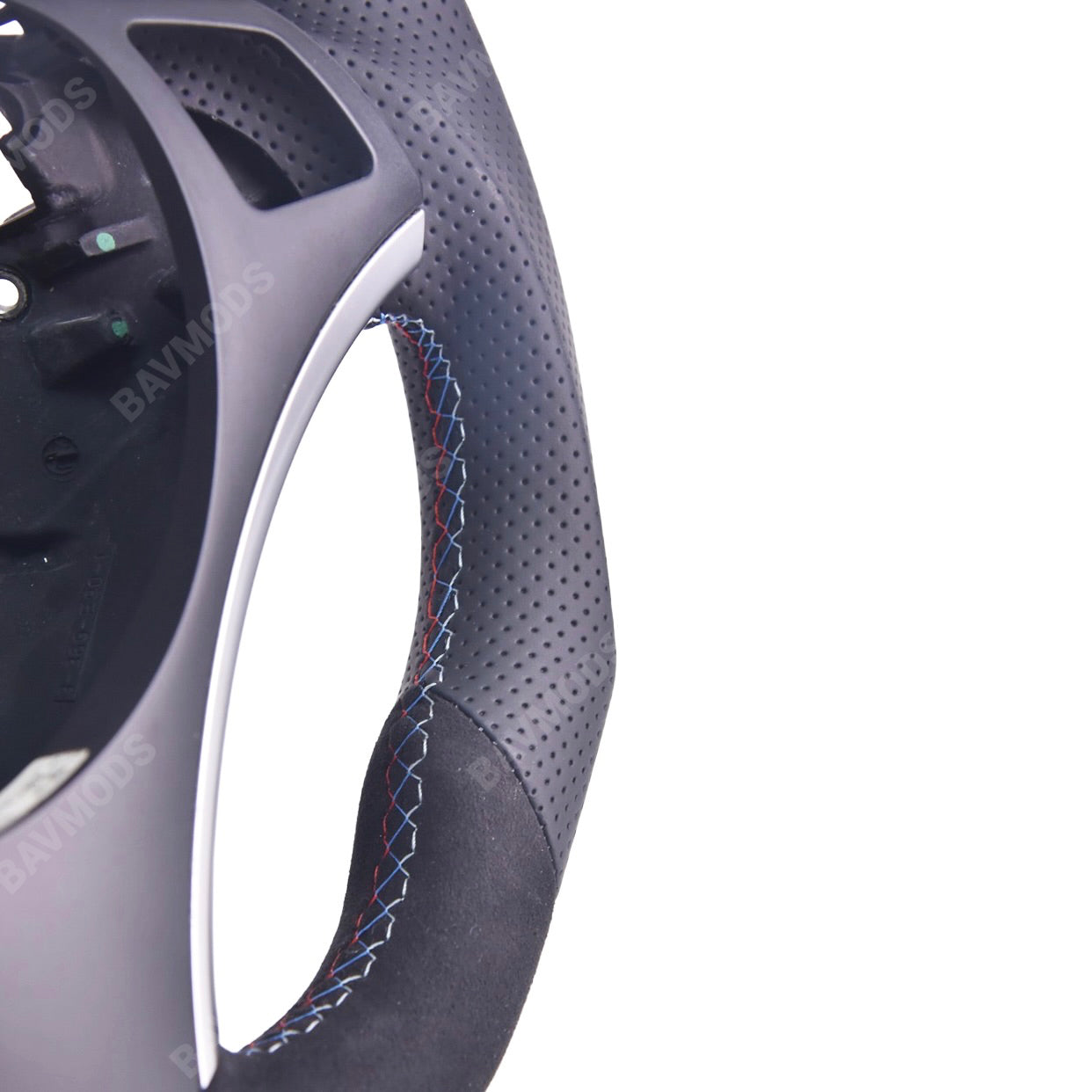Custom BMW 1 / 3 / X / Z Series Flat-Bottom Alcantara and Perforated Leather Sport Steering Wheel Preset 013 | No Stripe, M-Sport Color Stitching | E81 E82 E87 E88 E90 E91 E92 E93 M3