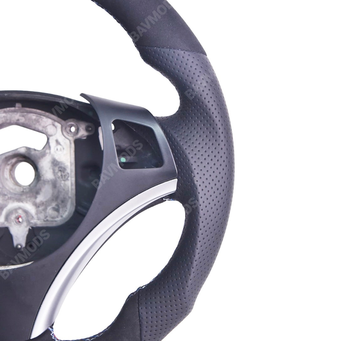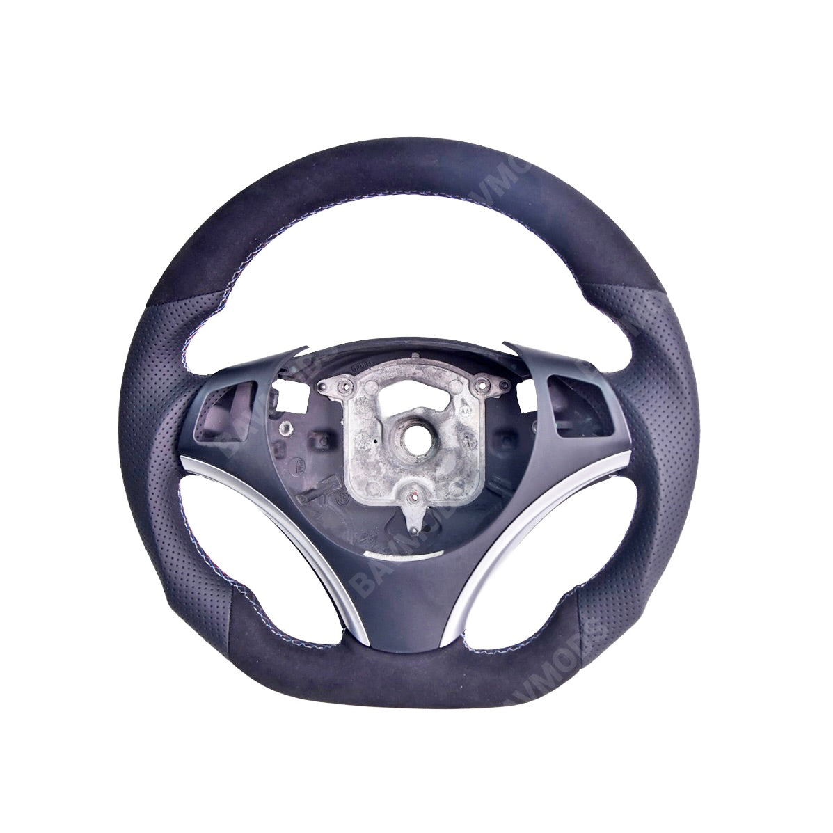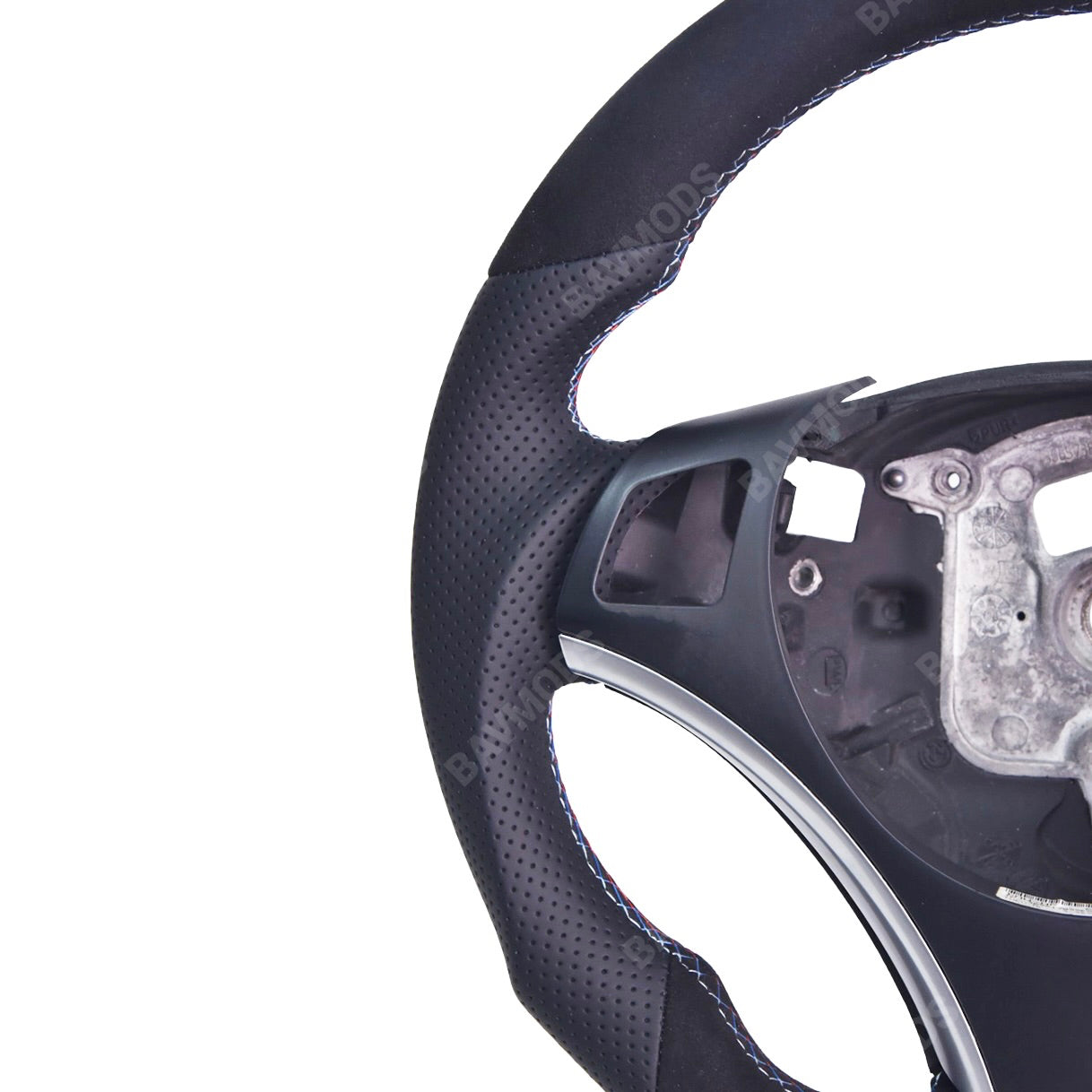 Custom BMW 1 / 3 / X / Z Series Flat-Bottom Alcantara and Perforated Leather Sport Steering Wheel Preset 013 | No Stripe, M-Sport Color Stitching | E81 E82 E87 E88 E90 E91 E92 E93 M3