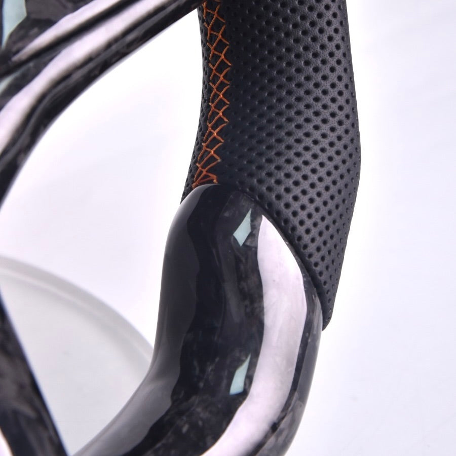 Custom BMW F90 / F91 M5 Flat-Bottom Carbon Fiber Steering Wheel Preset 008 | Orange Stripe, Orange Stitching, Forged Carbon Fiber | F Chassis 5 Series